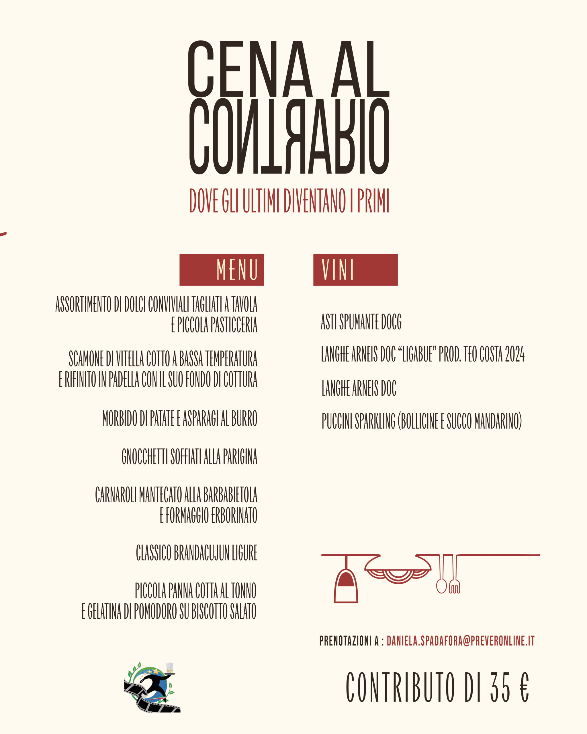Oggetto: EVENTO – CENA AL CONTRARIO